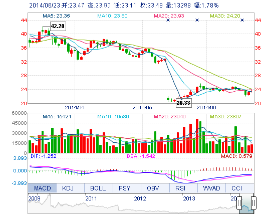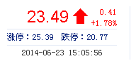 | 今 開: | 23.47 | 成交量: | 1.33萬手 | 振 幅: | 3.55% |