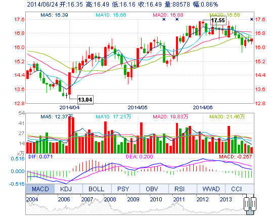 今開: 16.35 成交量: 8.86萬手 振幅: 2.02% 最高: 16.49 成交額: 1.45億元 換手率: 0.93% 最低: 16.16 總市值: 174.06億 市凈率: 4.72 昨收: 16.35 流通市值...