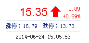 | 今 開: | 15.29 | 成交量: | 2.79萬手 | 振 幅: | 2.69% |