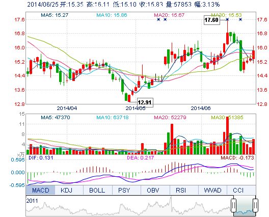 | 今 開(kāi): | 15.35 | 成交量: | 5.79萬(wàn)手 | 振 幅: | 6.58% |