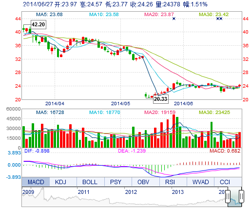 | 今 開: | 23.97 | 成交量: | 2.44萬手 | 振 幅: | 3.35% |