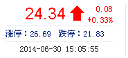 | 今 開: | 24.34 | 成交量: | 2.30萬手 | 振 幅: | 2.60% |
