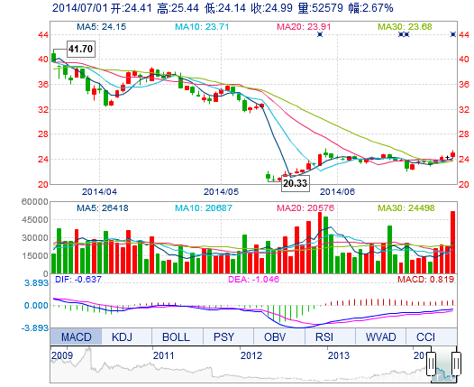 | 今 開: | 24.41 | 成交量: | 5.26萬手 | 振 幅: | 5.34% |