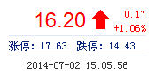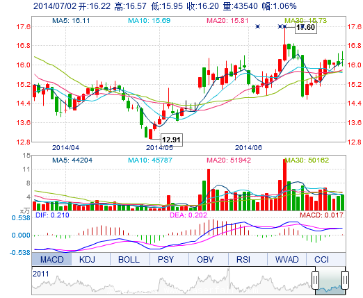 | 今 開: | 16.22 | 成交量: | 4.35萬手 | 振 幅: | 3.87% |