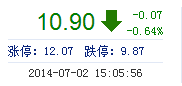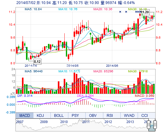 | 今 開: | 10.94 | 成交量: | 9.70萬手 | 振 幅: | 4.10% |