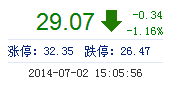今開: 29.52 成交量: 17.59萬手 振幅: 4.73% 最高: 29.89 成交額: 5.12億元 換手率: 2.77% 最低: 28.50 總市值: 190.37億 市凈率: 5.21 昨收: 29.41 流通市值...