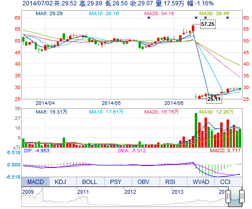 | 今 開: | 29.52 | 成交量: | 17.59萬手 | 振 幅: | 4.73% |