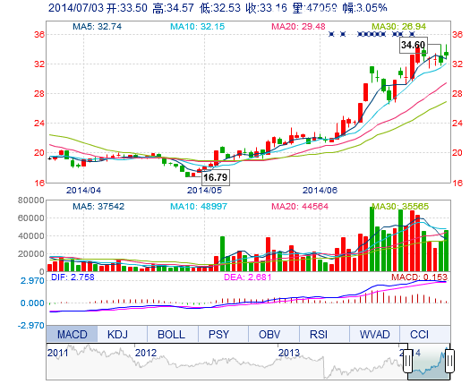 | 最 高: | 34.57 | 成交額: | 1.58億元 | 換手率: | 17.65% |