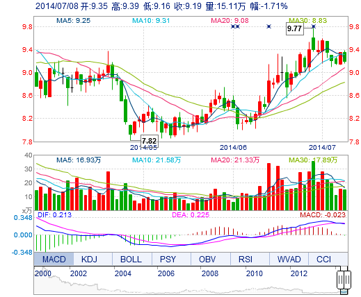 | 今 開: | 9.35 | 成交量: | 15.11萬手 | 振 幅: | 2.46% |