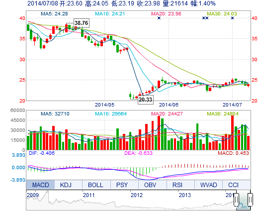 | 最 低: | 23.19 | 總市值: | 156.35億 | 市凈率: | 5.96 |