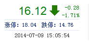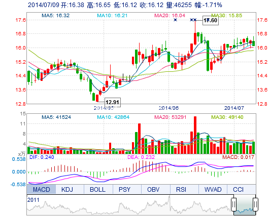 | 今 開: | 16.38 | 成交量: | 4.63萬手 | 振 幅: | 3.23% |