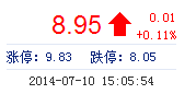 | 今 開: | 8.98 | 成交量: | 8.45萬手 | 振 幅: | 1.79% |