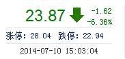| 今 開: | 25.48 | 成交量: | 7.28萬手 | 振 幅: | 8.12% |