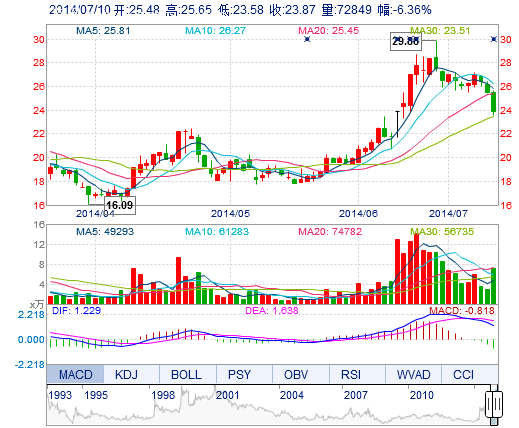 今開: 25.48 成交量: 7.28萬手 振幅: 8.12% 最高: 25.65 成交額: 1.78億元 換手率: 4.19% 最低: 23.58 總市值: 41.46億 市凈率: 11.99 昨收: 25.49 流通市值...