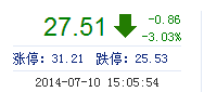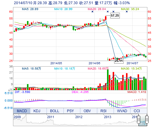 | 今 開: | 28.39 | 成交量: | 17.27萬手 | 振 幅: | 5.25% |