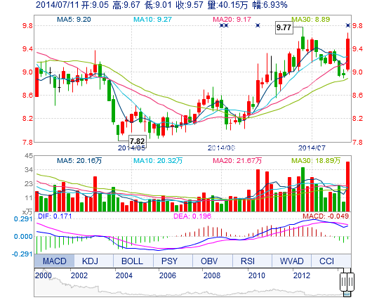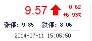 今開: 9.05 成交量: 40.15萬手 振幅: 7.37% 最高: 9.67 成交額: 3.77億元 換手率: 4.51% 最低: 9.01 總市值: 85.28億 市凈率: 3.19 昨收: 8.95 流通市值: 85...