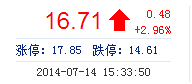 | 最 高: | 16.73 | 成交額: | 3.01億元 | 換手率: | 1.90% |