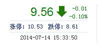 今開: 9.57 成交量: 24.86萬手 振幅: 2.72% 最高: 9.59 成交額: 2.35億元 換手率: 2.79% 最低: 9.33 總市值: 85.19億 市凈率: 3.18 昨收: 9.57 流通市值: 85...