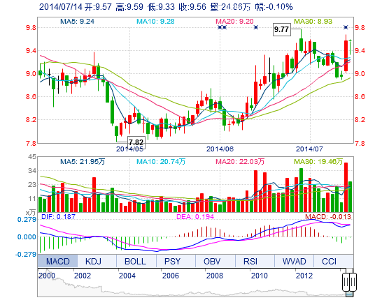 | 今 開: | 9.57 | 成交量: | 24.86萬手 | 振 幅: | 2.72% |