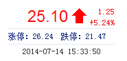 | 最 高: | 25.10 | 成交額: | 1.42億元 | 換手率: | 1.09% |