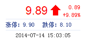 | 最 高: | 9.90 | 成交額: | 9.69億元 | 換手率: | 22.59% |