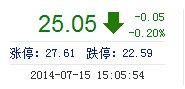 今開: 24.95 成交量: 3.05萬(wàn)手 振幅: 4.30% 最高: 25.38 成交額: 7613.65萬(wàn)元 換手率: 0.58% 最低: 24.30 總市值: 163.32億 市凈率: 6.23 昨收: 25.10 流通市...