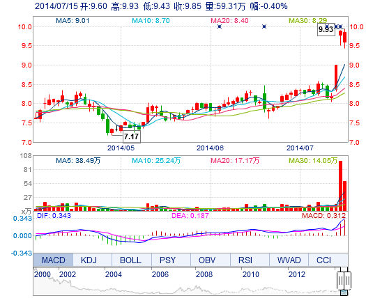 | 最 高: | 9.93 | 成交額: | 5.76億元 | 換手率: | 13.58% |