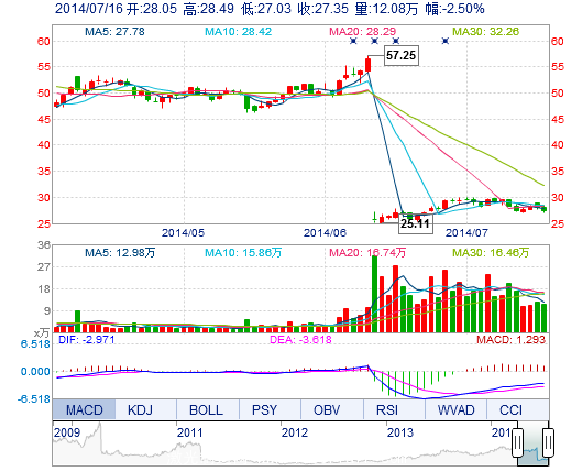 今開: 28.05 成交量: 12.08萬手 振幅: 5.20% 最高: 28.49 成交額: 3.35億元 換手率: 1.90% 最低: 27.03 總市值: 179.10億 市凈率: 4.90 昨收: 28.05 流通市值...