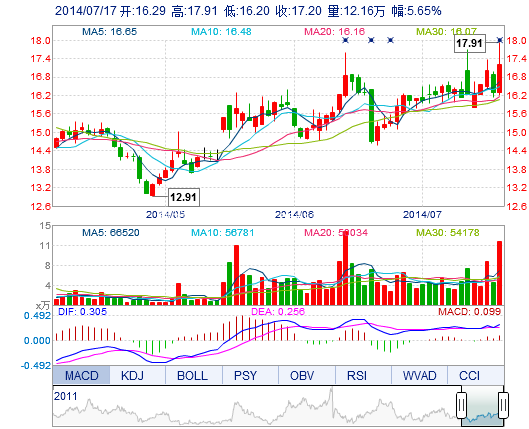 | 最 高: | 17.91 | 成交額: | 2.11億元 | 換手率: | 9.07% |
