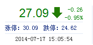 | 最 高: | 27.65 | 成交額: | 2.47億元 | 換手率: | 1.43% |