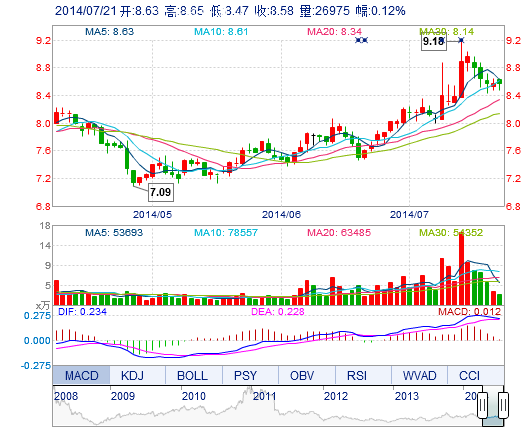 | 今 開(kāi): | 8.63 | 成交量: | 2.70萬(wàn)手 | 振 幅: | 2.10% |