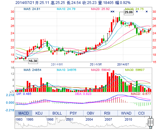 | 最 高: | 25.25 | 成交額: | 4610.00萬元 | 換手率: | 1.06% |