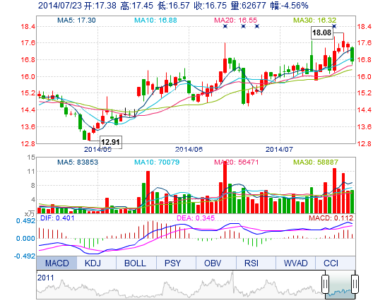 | 今 開: | 17.38 | 成交量: | 6.27萬手 | 振 幅: | 5.01% |