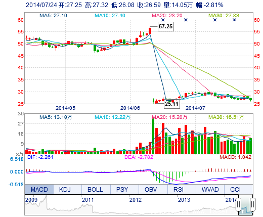 | 今 開: | 27.25 | 成交量: | 14.05萬手 | 振 幅: | 4.53% |