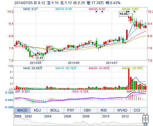 今開: 9.12 成交量: 17.39萬手 振幅: 4.12% 最高: 9.50 成交額: 1.62億元 換手率: 3.98% 最低: 9.12 總市值: 40.45億 市凈率: 2.90 昨收: 9.22 流通市值: 40...