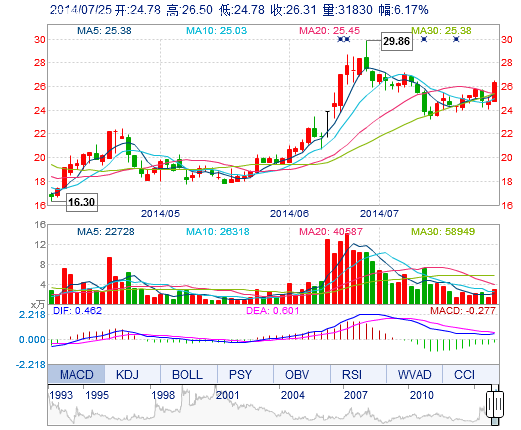 | 最 低: | 24.78 | 總市值: | 45.69億 | 市凈率: | 13.21 |