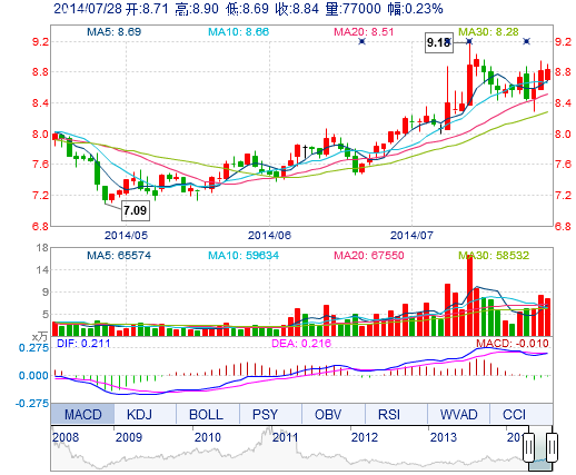 | 最 高: | 8.90 | 成交額: | 6769.07萬元 | 換手率: | 2.80% |