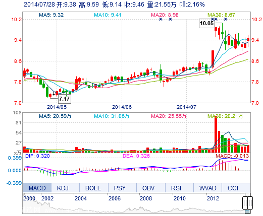 | 最 高: | 9.59 | 成交額: | 2.02億元 | 換手率: | 4.93% |