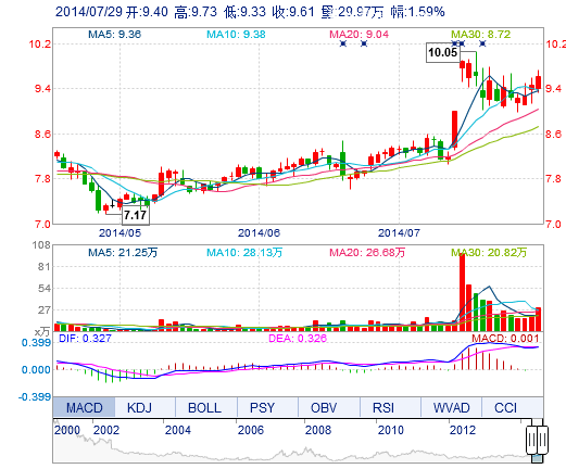 | 最 高: | 9.73 | 成交額: | 2.86億元 | 換手率: | 6.86% |