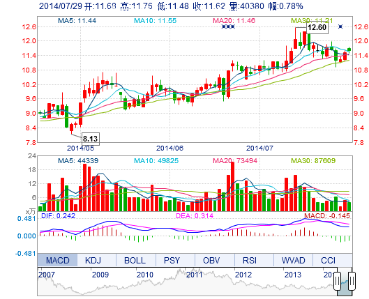 | 今 開: | 11.68 | 成交量: | 4.04萬手 | 振 幅: | 2.43% |