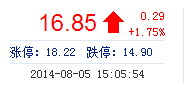 | 最 高: | 16.87 | 成交額: | 3.65億元 | 換手率: | 2.31% |