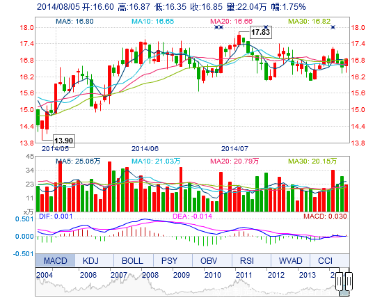 今開: 16.60 成交量: 22.04萬手 振幅: 3.14% 最高: 16.87 成交額: 3.65億元 換手率: 2.31% 最低: 16.35 總市值: 177.86億 市凈率: 4.82 昨收: 16.56 流通市值...