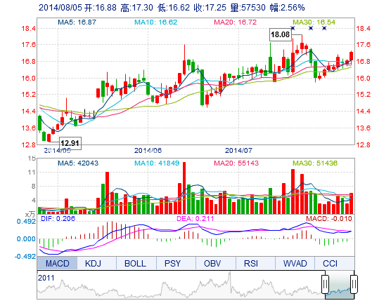 | 今 開: | 16.88 | 成交量: | 5.75萬手 | 振 幅: | 4.04% |