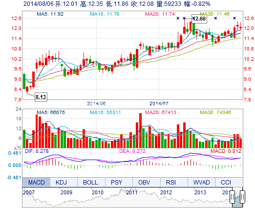 今開: 12.01 成交量: 5.92萬手 振幅: 4.02% 最高: 12.35 成交額: 7159.57萬元 換手率: 2.97% 最低: 11.86 總市值: 24.07億 市凈率: 4.86 昨收: 12.18 流通市...