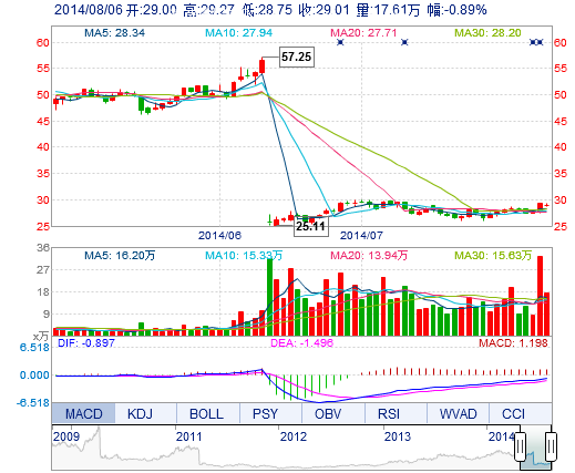 | 今 開: | 29.00 | 成交量: | 17.61萬手 | 振 幅: | 1.78% |