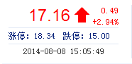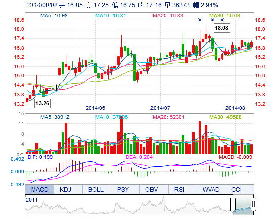 | 今 開: | 16.85 | 成交量: | 3.64萬手 | 振 幅: | 3.00% |