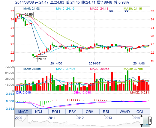 | 最 低: | 24.45 | 總市值: | 161.11億 | 市凈率: | 6.14 |