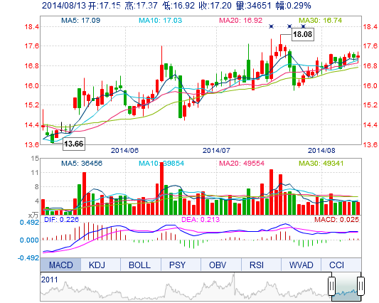 | 今 開: | 17.15 | 成交量: | 3.47萬手 | 振 幅: | 2.62% |