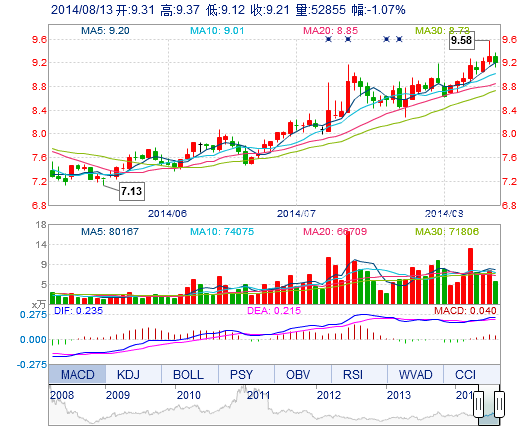 今開: 9.31 成交量: 5.29萬手 振幅: 2.69% 最高: 9.37 成交額: 4875.49萬元 換手率: 1.92% 最低: 9.12 總市值: 26.25億 市凈率: 4.09 昨收: 9.31 流通市值: ...