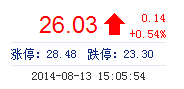 | 最 高: | 26.19 | 成交額: | 7312.62萬元 | 換手率: | 0.54% |
